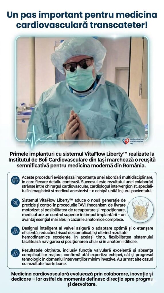 Primele implanturi cu sistemul VitaFlow Liberty realizate la Institutul de Boli Cardiovasculare din Iași marchează o reușită semnificativă pentru medicina modernă din România